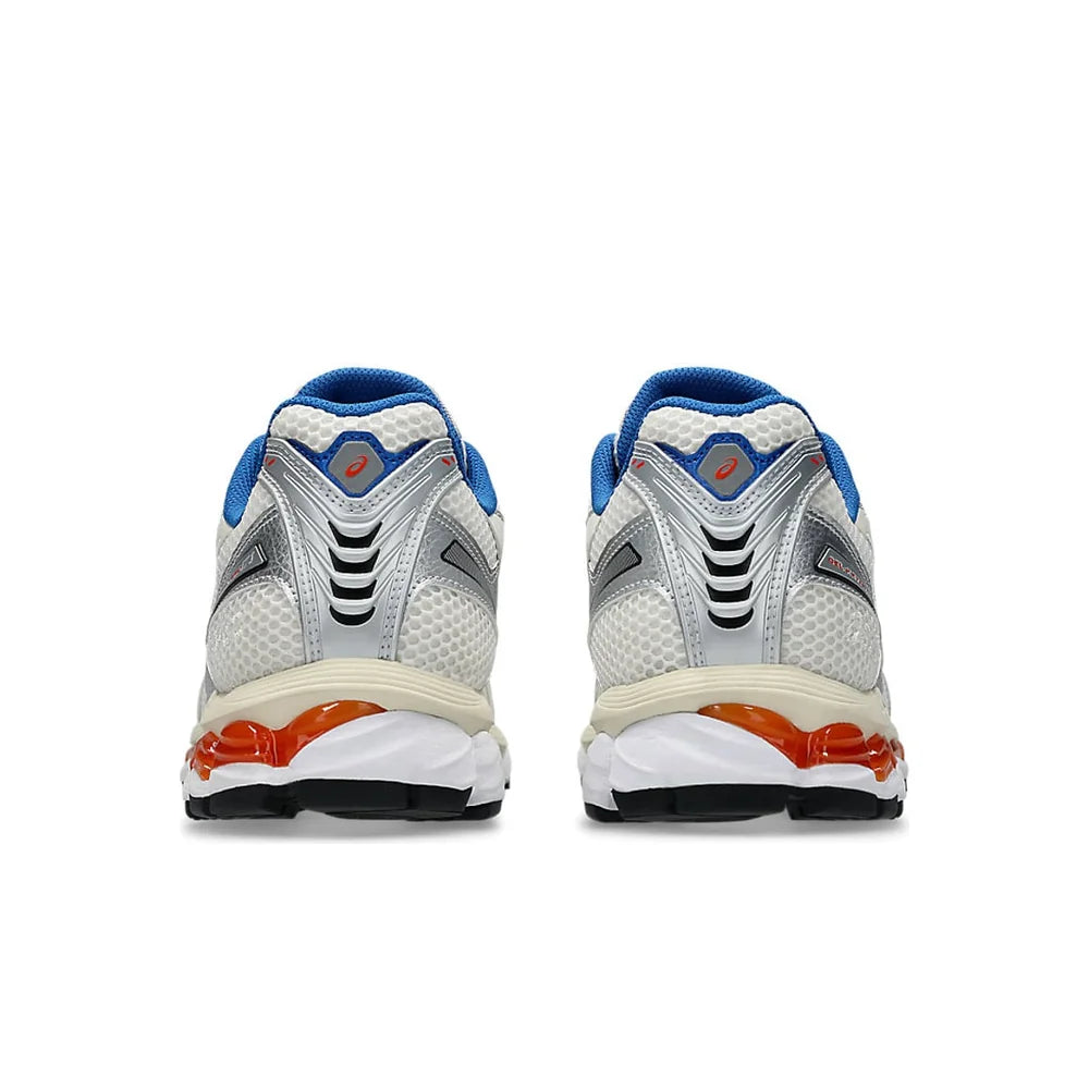 The ASICS Gel-Kayano 12.1 Ronnie Fieg 'Knicks' pays homage to New York basketball with orange and blue accents over a white mesh and synthetic frame. Lightweight and supportive for all-day wear.