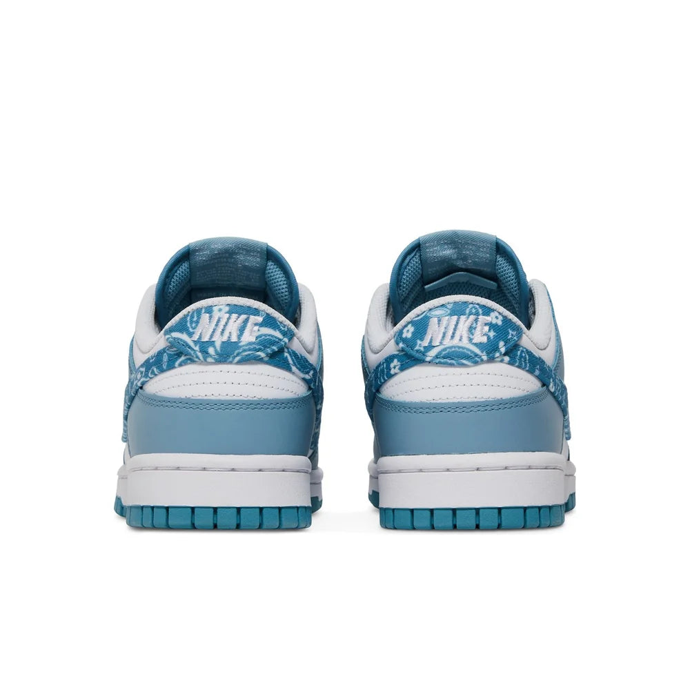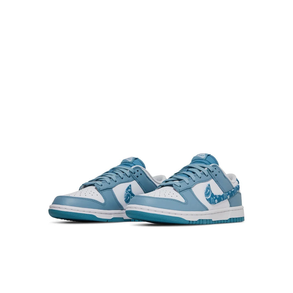 The Nike Dunk Low 'Blue Paisley' brings a fresh twist to the classic silhouette with blue paisley Swoosh detailing. Smooth leather construction ensures durability, while the padded collar offers comfort. A perfect mix of heritage and modern style.