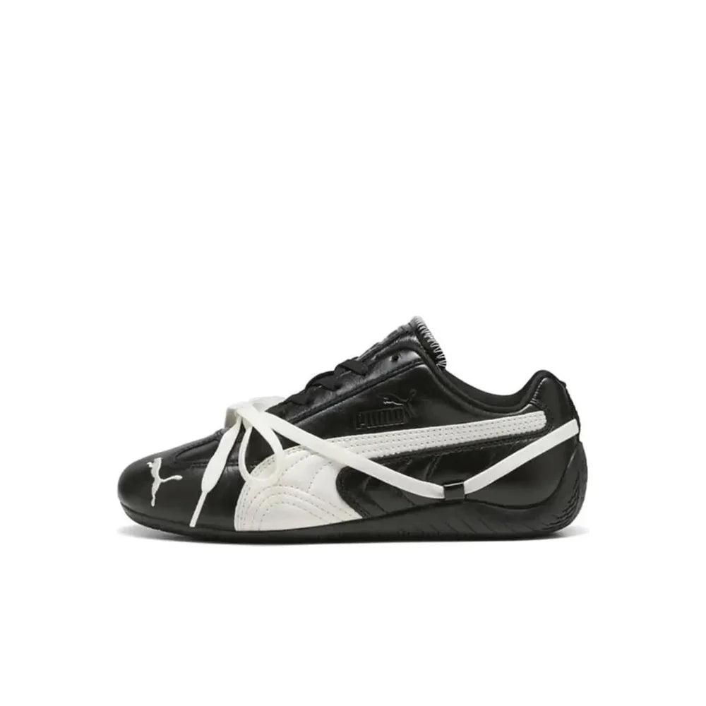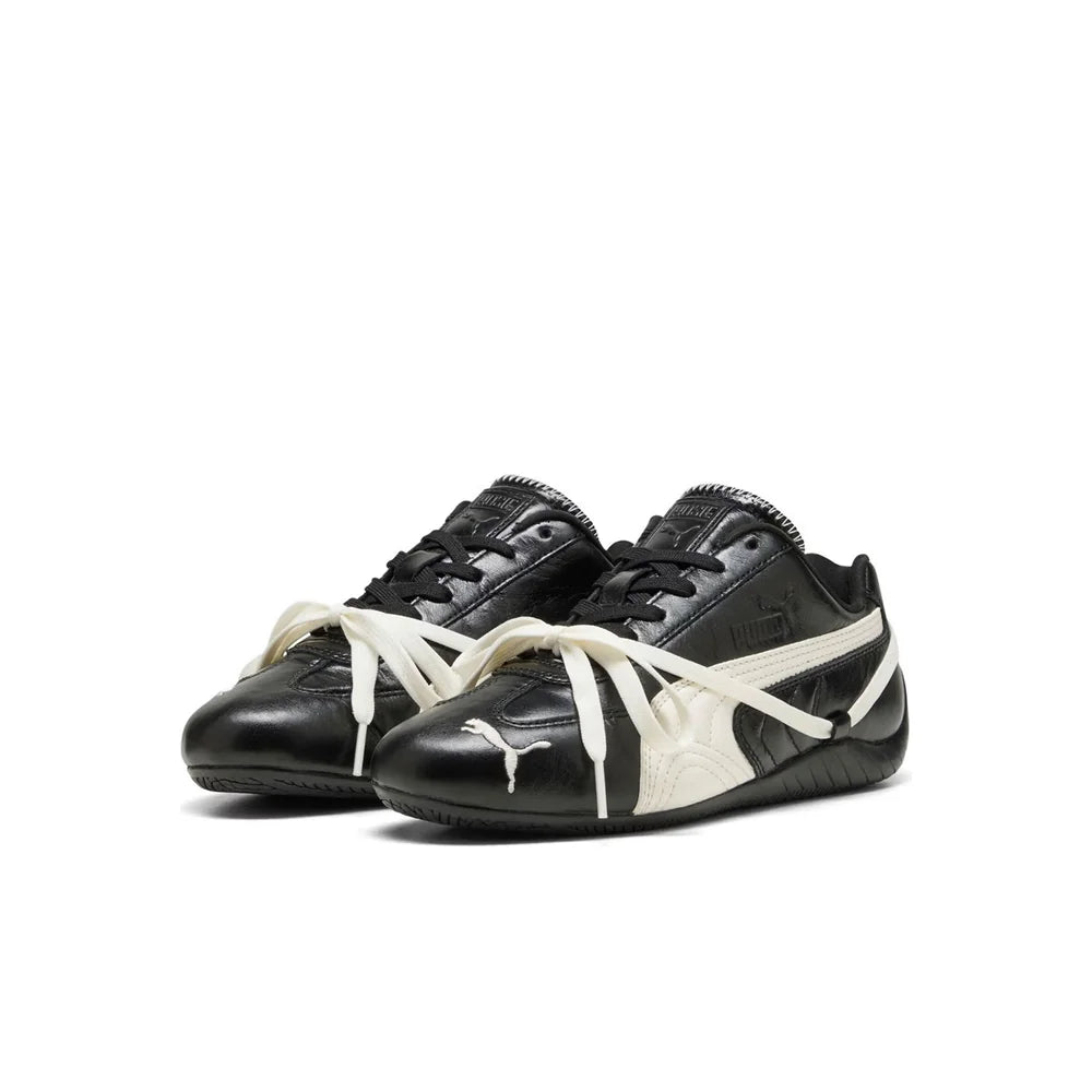 The Puma Speedcat Premium 'Rosé Black' brings luxury craftsmanship to the iconic racing silhouette. Its soft rose-pink suede upper contrasts elegantly with black detailing, capturing a balance between sleek motorsport design and refined streetwear style. A slim rubber sole enhances grip and agility, while the cushioned insole ensures comfort for everyday wear. Finished with tonal stitching and subtle branding, it’s a bold yet sophisticated revival of a motorsport classic.