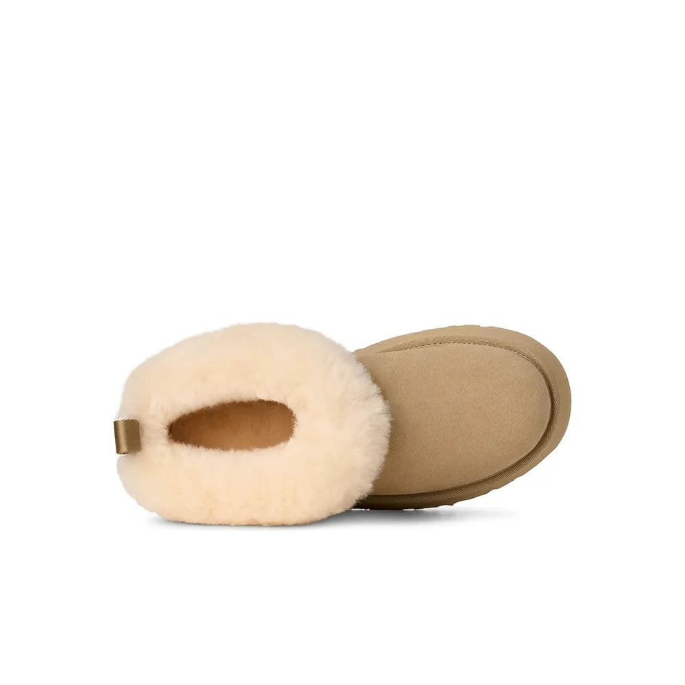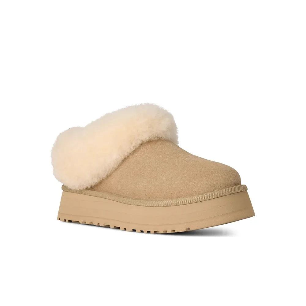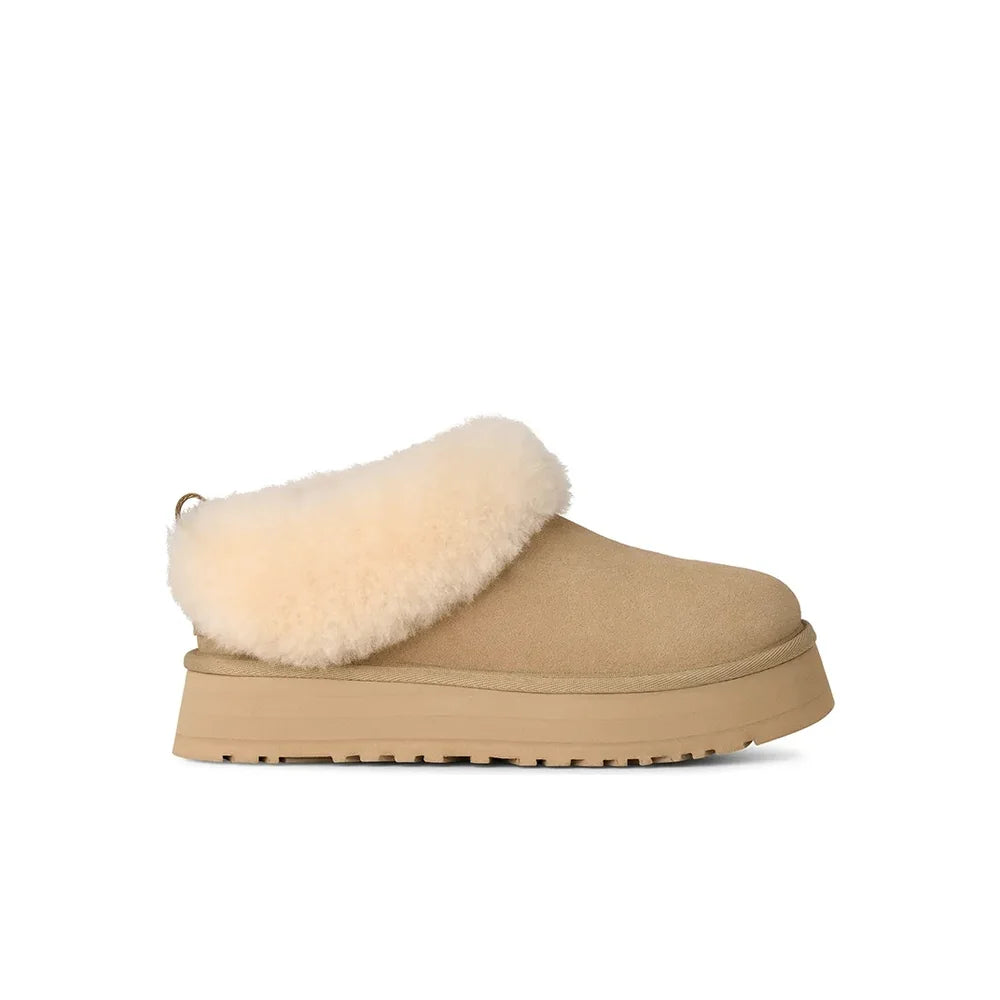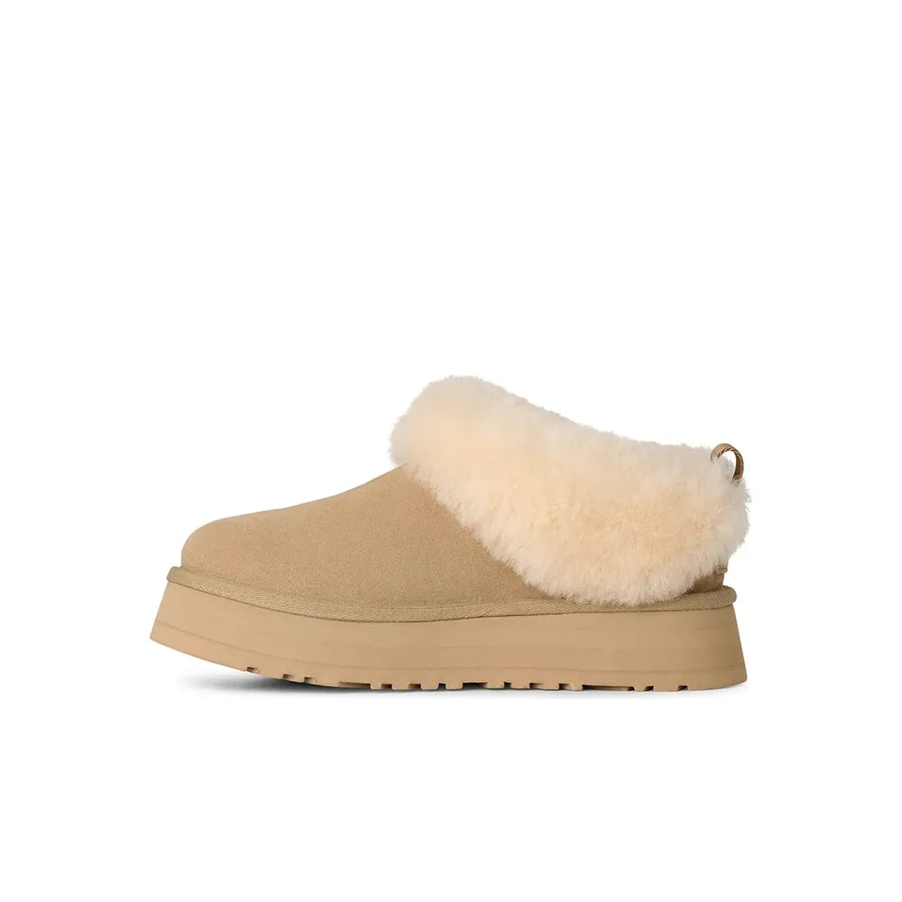 The UGG Tazelle brings a playful twist to UGG’s signature coziness with its platform design and bold yet casual silhouette. Made from premium suede and lined with the brand’s signature wool blend, it delivers all-day warmth and comfort. The elevated sole adds a modern edge while remaining lightweight and versatile, making it perfect for pairing with relaxed streetwear or cozy at-home fits. A statement style that balances comfort and trend.