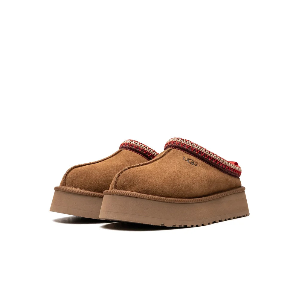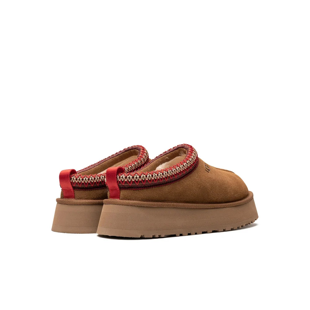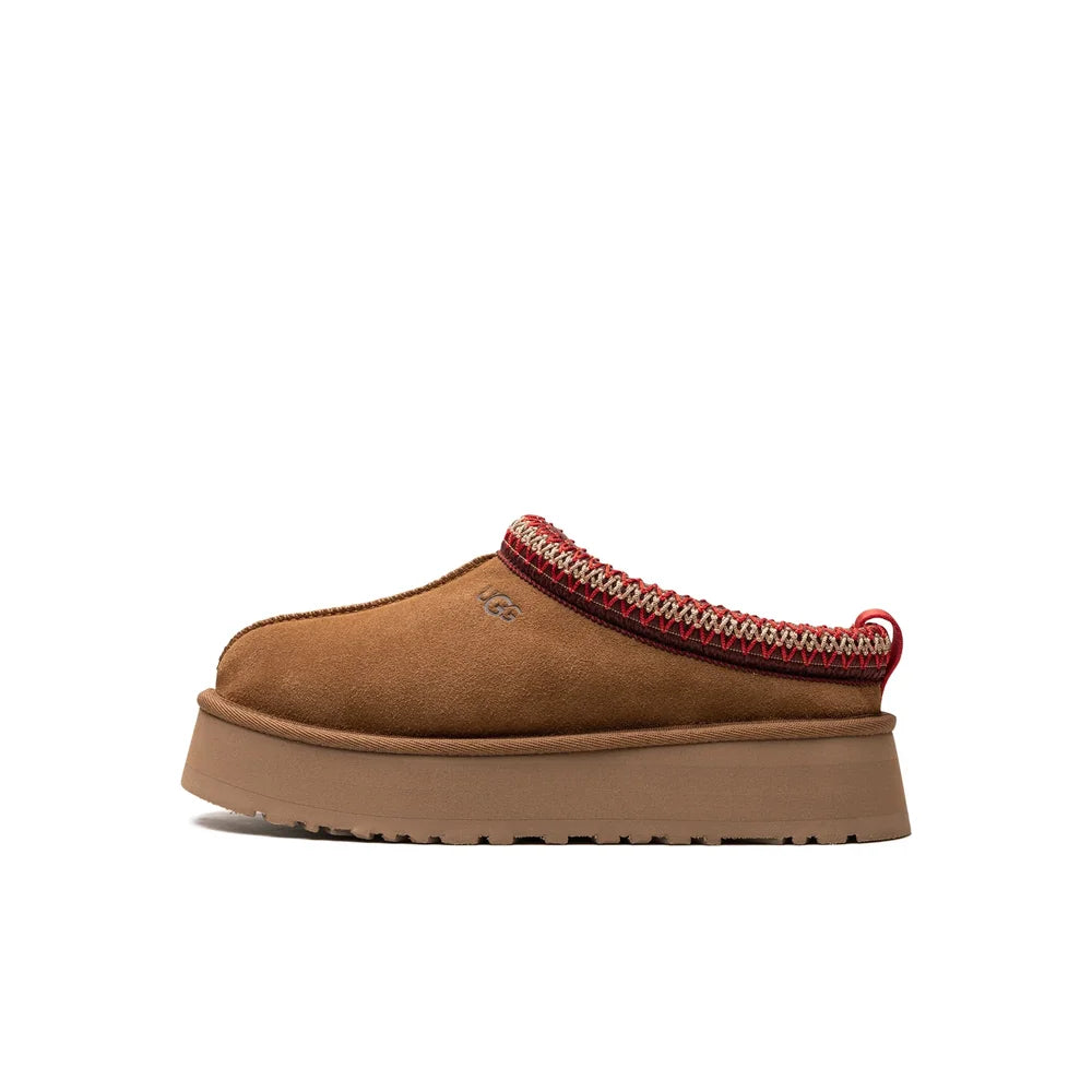 The UGG Tazz Slipper updates the iconic Tasman with a bold platform sole and elevated comfort. Crafted from premium suede, it features the signature embroidered braid along the collar and a soft UGGplush™ wool blend lining for cozy warmth. The 1.5-inch platform adds a modern edge while keeping the same effortless slip-on silhouette. Equal parts lounge and street-ready, the Tazz is a statement in everyday comfort and style.
