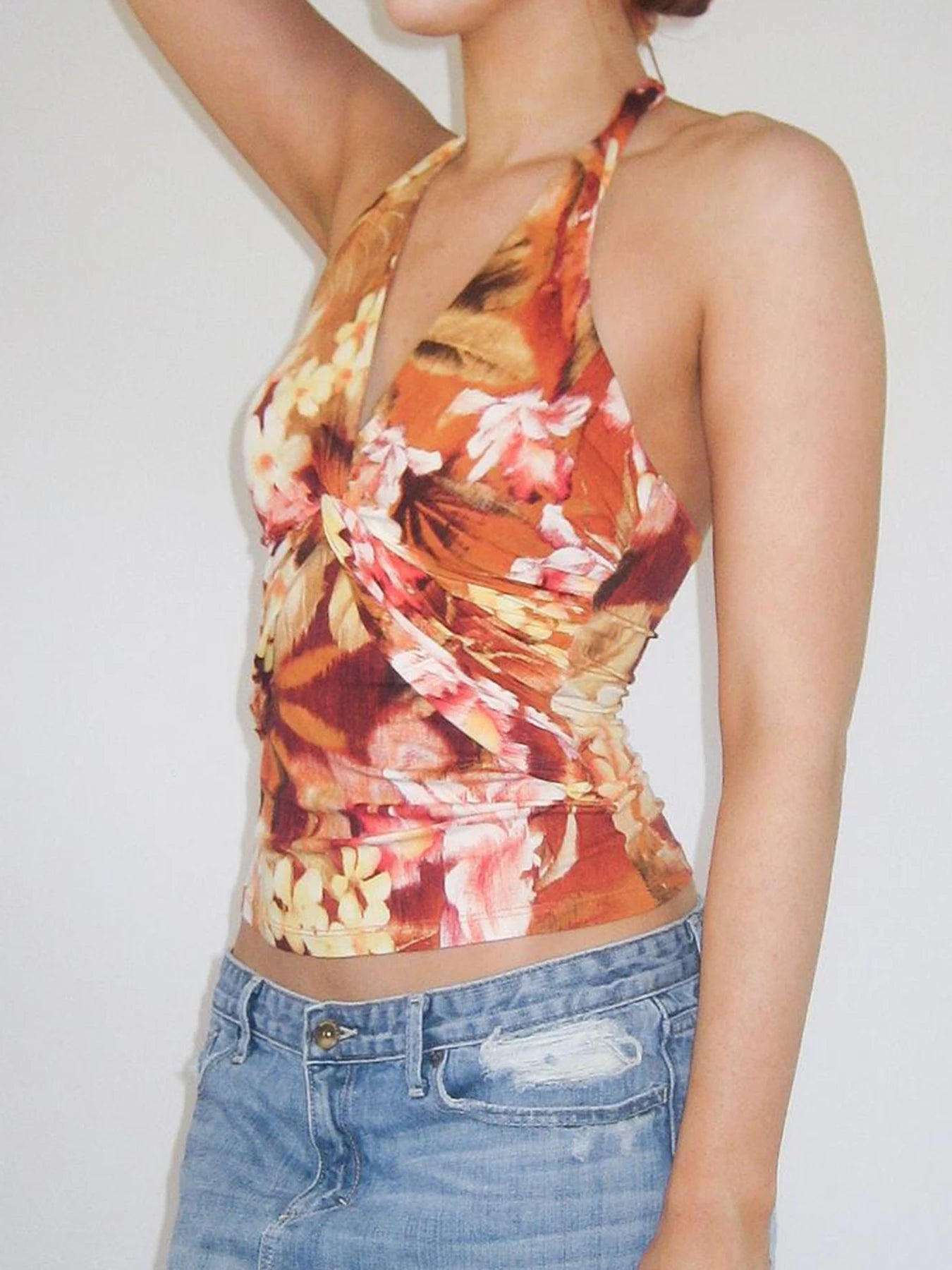 Or layer under a cropped denim jacket with mini shorts and chunky jewelry for a sunset drink look
