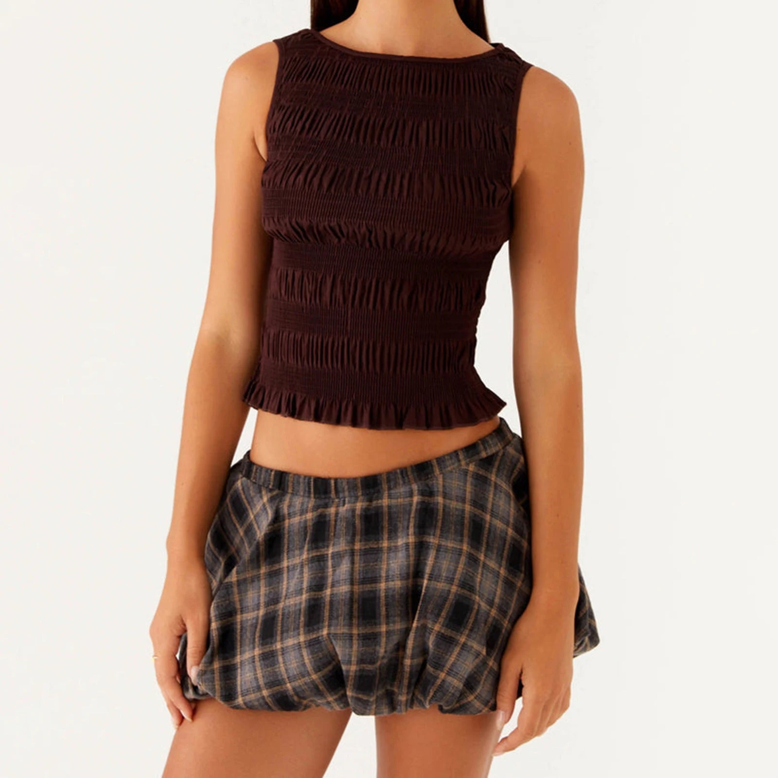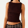 This sleeveless velvet top blends a straight silhouette with subtle smocked details for a refined finish. Lightweight and unlined, it offers just enough structure for layering or solo wear. Designed for comfort, built to stand out quietly.