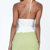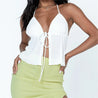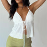 This front-tie halter crop top brings movement and attitude to summer nights. Designed in lightweight plissé fabric, it features a deep front split, tie closure, and flowy hem that catches every breeze. The open-back halter cut adds a confident finish—perfect for when you want your look to speak without saying a word.