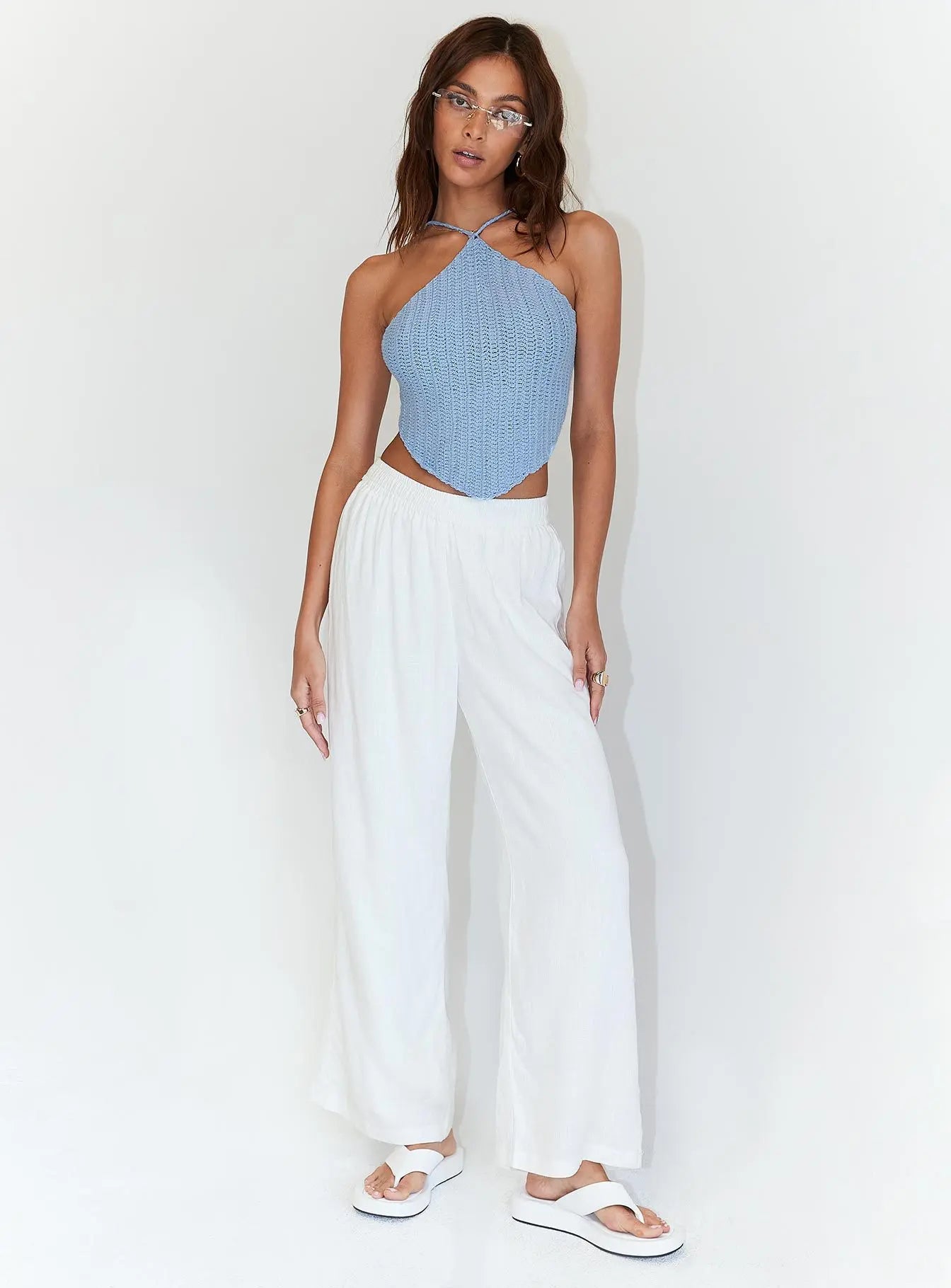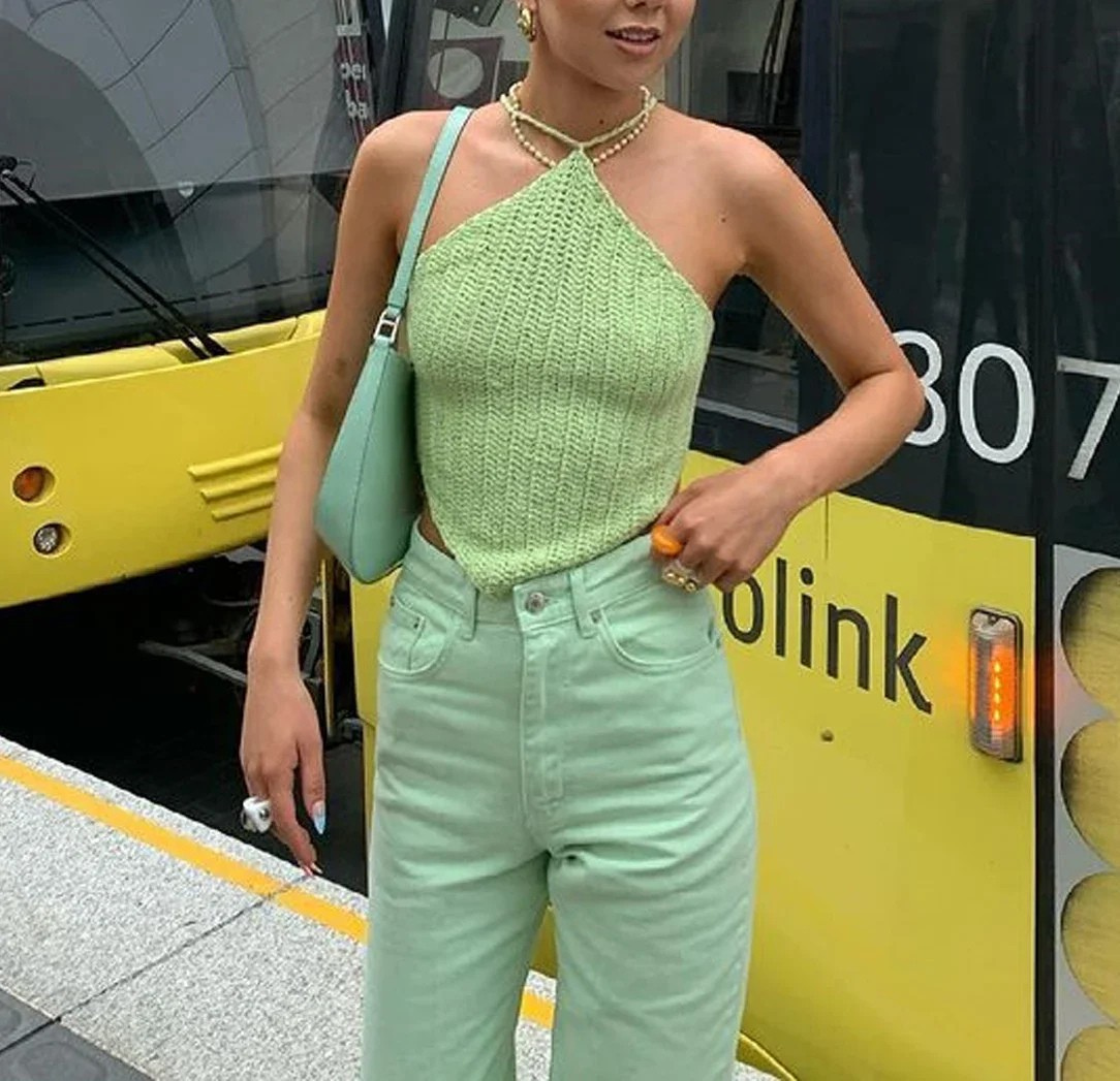 Pair it with high-rise linen trousers or a flowy wrap skirt
