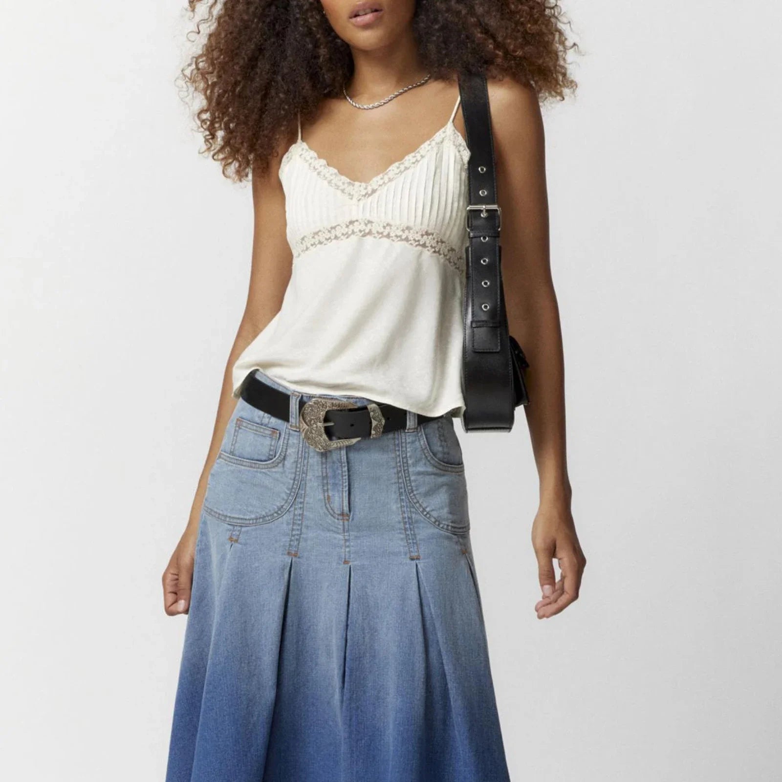 Pair it with tailored trousers and heeled mules for a dinner-ready look, or throw it on with cut-off shorts and layered necklaces for rooftop season. Add a blazer if the night calls for it—this top plays both sides.