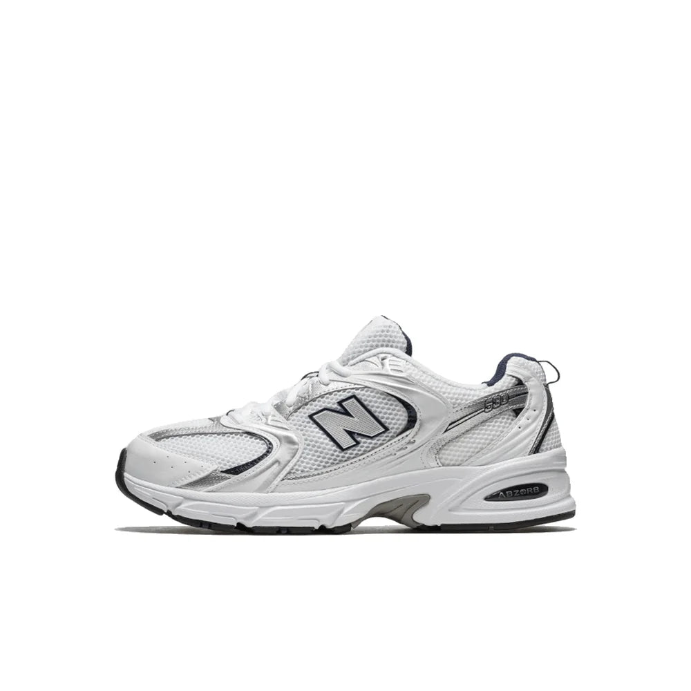 The New Balance 530 'White/Natural Indigo' offers a clean, classic look with all-white panels and subtle retro detailing. A versatile sneaker that blends running-inspired comfort with timeless style.