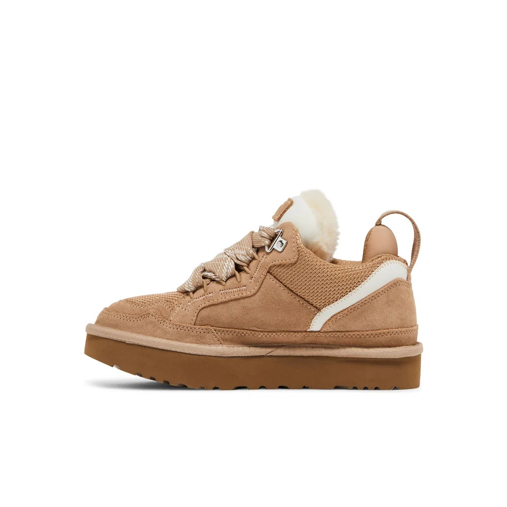 The UGG Lowmel delivers a modern take on casual sneakers, designed with clean lines and versatile appeal. Its blend of suede and textile on the upper ensures both durability and a premium finish, while the lightweight SugarSole™ outsole adds a sustainable touch. With a cushioned foam insole and padded collar, it’s built for everyday comfort—perfect for pairing with relaxed streetwear or laid-back outfits.